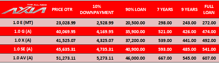 Menawarkan empat varian untuk model Axia baru kali ini iaitu G, X, SE dan AV.
